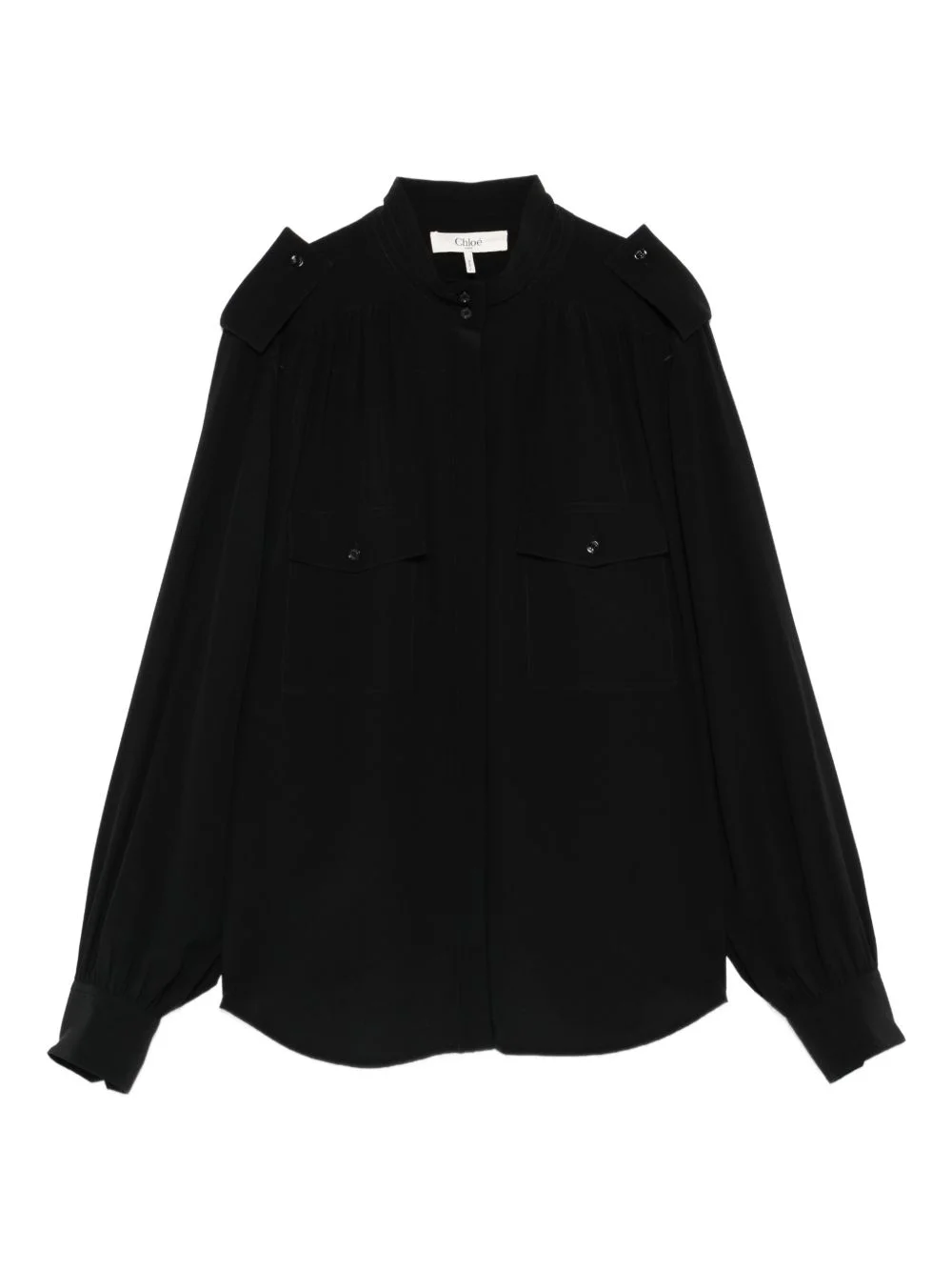 silk shirt Highlights - Black - Shoulder epaulettes - Button fastening - Long sleeves - Buttoned cuffs - Chest pockets Imported Composition Silk 100% SIZE & FIT Model measurements Height 5 ft 10 in(1.79 m) Bust/Chest 31.88 in(81 cm) Hips 35.43 in(90 cm) Waist 24.8 in(63 cm) Washing instructions Dry Clean Only