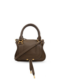 small Marcie tote bag Highlights - Cedar brown - Calf leather - Grained texture - Debossed logo to the front - Signature leather flap - Tassel detail - Gold-tone hardware - Top zip fastening - Detachable shoulder strap - Two rolled top handles - Slip pocket to the front - Main compartment - Internal zip-fastening pocket - Full lining - This piece comes complete with a protective dust bag. Made in Italy Composition Outer: Calf Leather 100% Lining: Linen/Flax 68%, Cotton 32% SIZE & FIT Measurement DEPTH 3.14 in(8 cm) HEIGHT 7.87 in(20 cm) STRAP 20.07 in(51 cm) WIDTH 11.81 in(30 cm) HANDLE 5.51 in(14 cm)