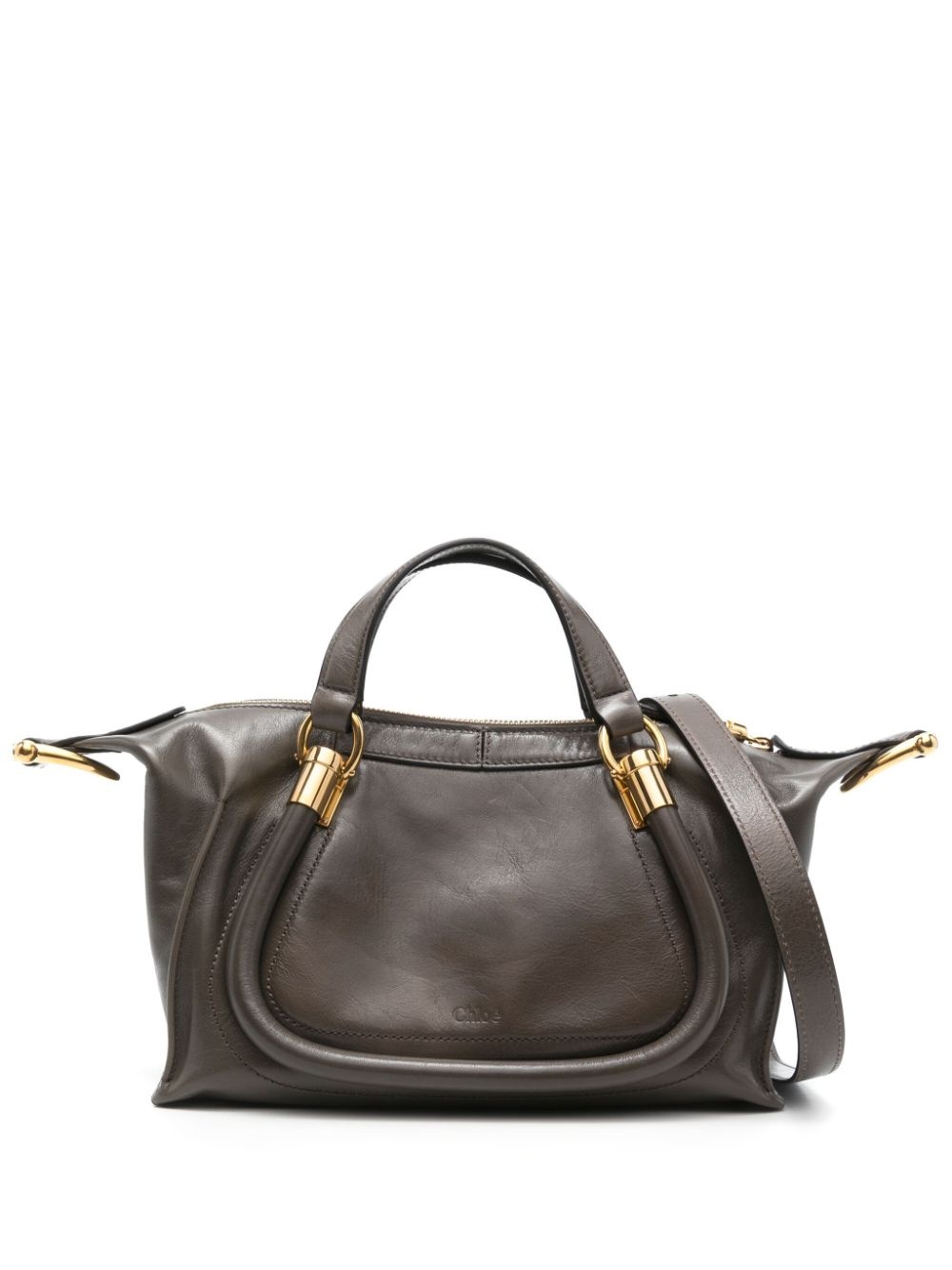 small Paraty shoulder bag Highlights - Olive green - Calf leather - High-shine finish - Top zip fastening - Two flat top handles - Adjustable detachable shoulder strap - Debossed logo to the front - Padded trim - Main compartment - Cotton-linen lining - Internal logo patch - Internal slip pocket - This piece comes complete with a protective dust bag. Made in Italy Composition Outer: Calf Leather 100% Lining: Cotton 54%, Linen/Flax 46% SIZE & FIT Model measurements Height 5 ft 9 in(1.75 m) Bust/Chest 34.64 in(88 cm) Hips 36.61 in(93 cm) Waist 26.37 in(67 cm) Measurement DEPTH 5.51 in(14 cm) HANDLE 3.54 in(9 cm) HEIGHT 6.29 in(16 cm) STRAP 44.09 in(112 cm) WIDTH 13.77 in(35 cm)