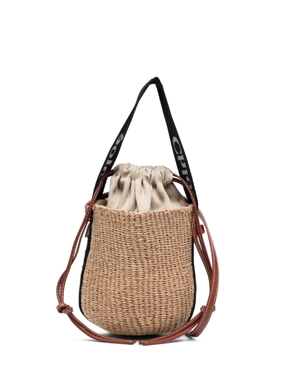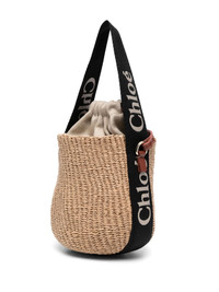 small Woody bucket bag Highlights - Beige/black - Paper raffia - Interwoven design - Logo-tape detailing - Single top handle - Thin leather shoulder strap - Drawstring fastening - Main compartment - Internal logo patch - Linen lining - This piece comes complete with a protective dust bag. Imported Composition Outer: Calf Leather 100%, Polyester 100%, Paper 100% Lining: Linen/Flax 100% SIZE & FIT Model measurements Height 5 ft 11 in(1.8 m) Bust/Chest 33.07 in(84 cm) Hips 37.4 in(95 cm) Waist 25.19 in(64 cm) Measurement DEPTH 5.51 in(14 cm) HANDLE 5.9 in(15 cm) HEIGHT 6.29 in(16 cm) STRAP 18.5 in(47 cm) WIDTH 5.9 in(15 cm)
