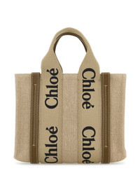 small Woody tote bag Highlights - Taupe - Linen-cotton blend - Canvas - Leather trim - Open top - Two rolled top handles - Adjustable detachable shoulder strap - Embroidered logo to the front - Stripe detailing - Main compartment - Internal slip pocket - Internal logo patch Made in Italy Composition Outer: CALFSKIN 100%, Linen/Flax 68%, Cotton 32% SIZE & FIT Measurement DEPTH 3.14 in(8 cm) HANDLE 3.14 in(8 cm) HEIGHT 7.48 in(19 cm) STRAP 22.04 in(56 cm) WIDTH 10.03 in(25.5 cm)