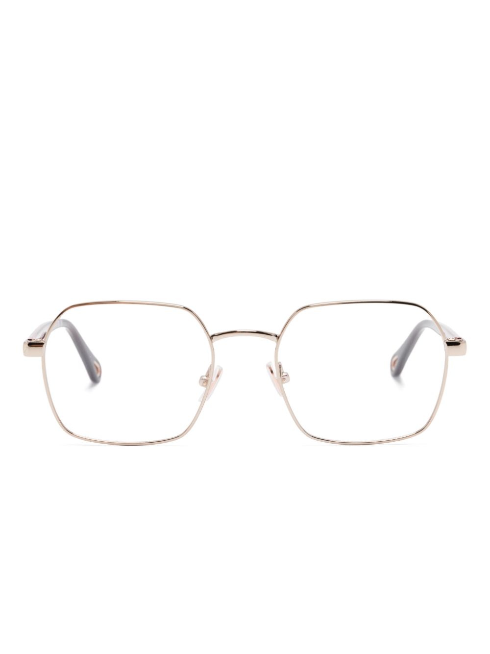 square-frame glasses Highlights - Gold-tone/pink - Logo-engraved arm - Logo-engraved tips - Square frame - Clear lenses - Nose pads - Straight arms - Curved tips - These glasses come with a protective case. - All glasses from farfetch are sold as non-prescription frames. Made in Italy Composition Metal (Other) 100%, Acetate 100% SIZE & FIT Measurement Arm Length 5.51 in(14 cm) Bridge Width 0.74 in(1.9 cm) Lens Diameter 2.04 in(5.2 cm) Total Width 5.35 in(13.6 cm)