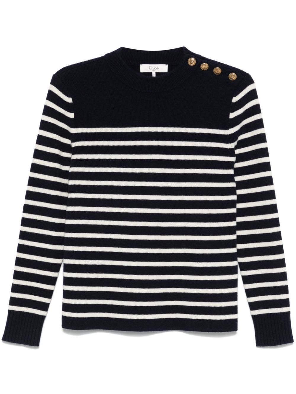 striped sweater Highlights - Navy blue - Button fastening at the shoulder - Crew neck - Long sleeves - Ribbed cuffs Imported Composition Outer: Wool 92%, Cashmere 8% Lining: Wool 92%, Cashmere 8% SIZE & FIT Model measurements Height 5 ft 11 in(1.8 m) Bust/Chest 33.07 in(84 cm) Hips 37.4 in(95 cm) Waist 25.19 in(64 cm) FittingInformation Designed for a close fit throughout Made with a midweight knit, this piece offers some stretch