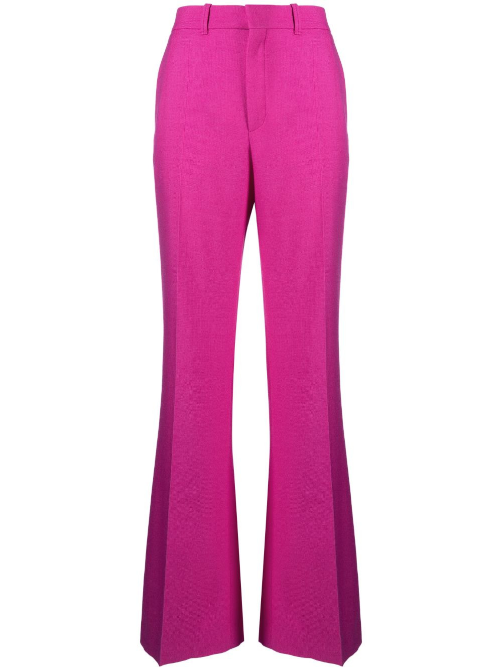 tailored concealed-front trousers Highlights - Fucsia pink - Wool-cashmere-silk blend - Flared - Pressed crease - Belt loops - Concealed front fastening - Two side inset pockets - Two rear welt pockets Made in France Composition Outer: Wool 70%, Silk 17%, Cashmere 13% Lining: Silk 100% SIZE & FIT Model measurements Height 5 ft 10 in(1.79 m) Bust/Chest 31.1 in(79 cm) Hips 35.03 in(89 cm) Waist 24.01 in(61 cm) Measurement INSIDE LEG 34.25 in(87 cm) HIPS 35.43 in(90 cm) WAIST 29.13 in(74 cm) FittingInformation Designed with a wide-leg cut, these trousers allow for a close fit at the waist and offer a loose and roomy fit over the leg Made from a midweight non-stretch fabric This piece fits true to size – take your usual size Washing instructions Dry Clean Only