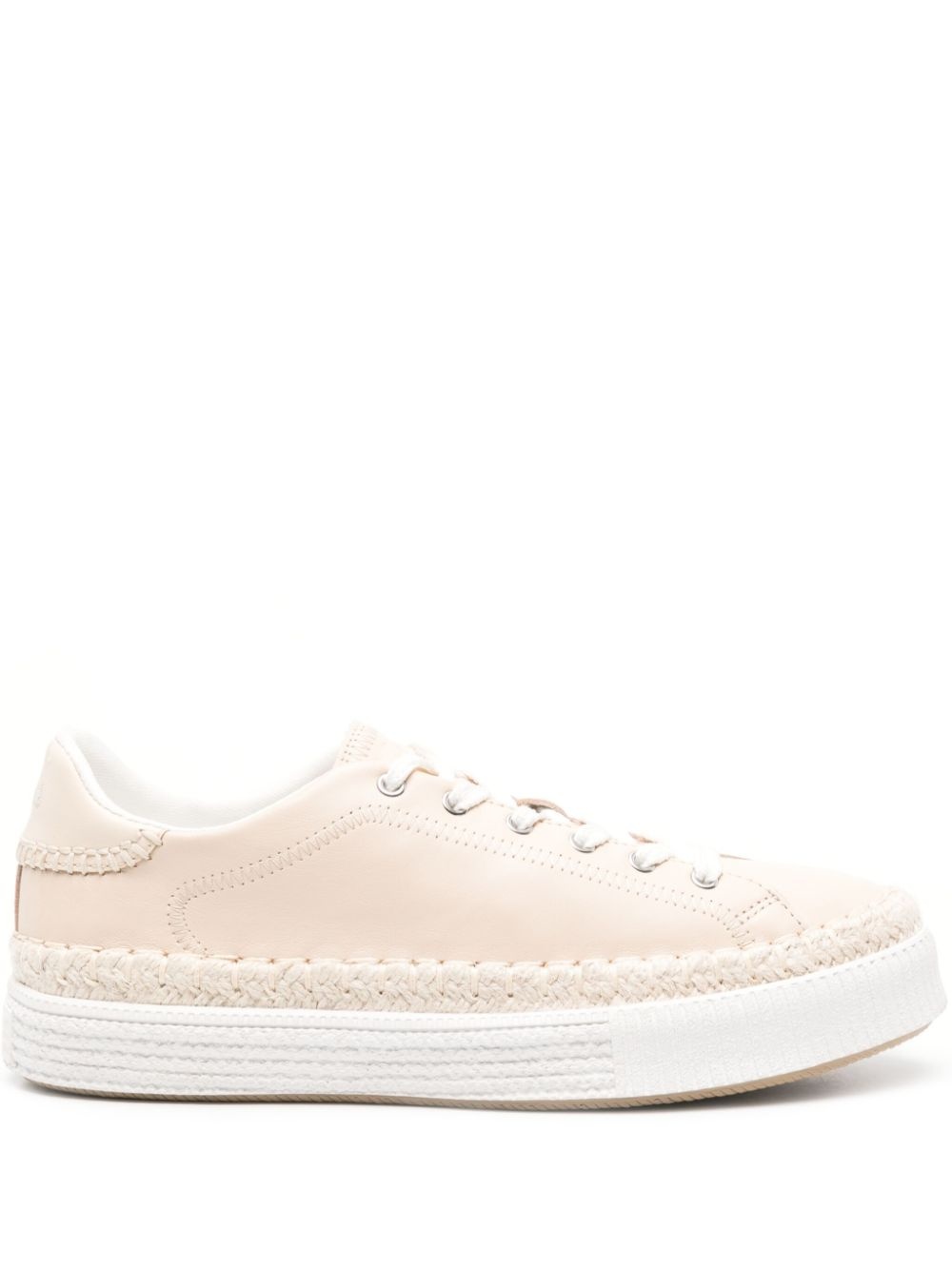 Telma leather sneakers Highlights - Light beige/white - Calf leather - Logo-debossed tongue - Branded heel counter - Braided raffia around the sole - Embossed nautical-rope pattern at the sole - Logo at the sole - Round toe - Front lace-up fastening - Jersey lining - Branded insole - Chunky rubber sole Imported Composition Leather 100% SIZE & FIT Measurement HEEL 1.37 in(3.5 cm) Sole height 0.98 in(2.5 cm)