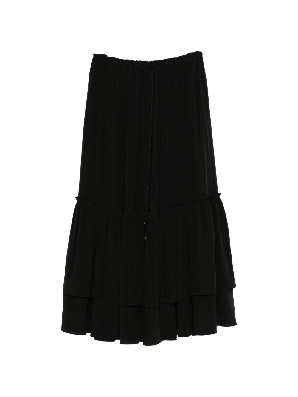 tiered ruffled maxi skirt Highlights - Black - Ruffled detail - Tiered - Drawstring fastening - Gathered detail - Elasticated waistband Imported Composition Silk 100% Washing instructions Dry Clean Only