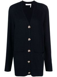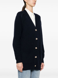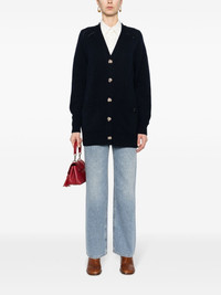V-neck fine-knit cardigan Highlights - Navy blue - Wool-cashmere blend - Fine knit - Gold-tone buttons - Gold-tone logo plaque - V-neck - Front button fastening - Long sleeves - Ribbed cuffs and hem - Straight hem Imported Composition Cashmere 96%, Wool 4% SIZE & FIT Measurement SLEEVE LENGTH 17.71 in(45 cm) HIPS 34.64 in(88 cm) LENGTH 28.74 in(73 cm) WAIST 39.37 in(100 cm) BUST 40.94 in(104 cm) Washing instructions Dry Clean Only