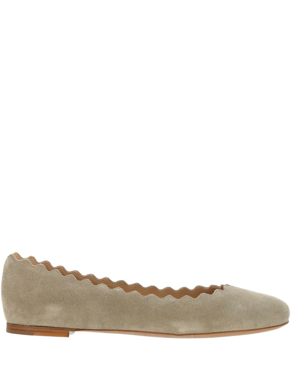wavy edges lauren ballerina Highlights - Antique green - Suede goatskin - Wavy edges - Padded footbed - Curved lines - Leather sole Made in Italy Composition Outer: Calf Suede 100% Sole: Rubber 100% Lining: Calf Leather 100%