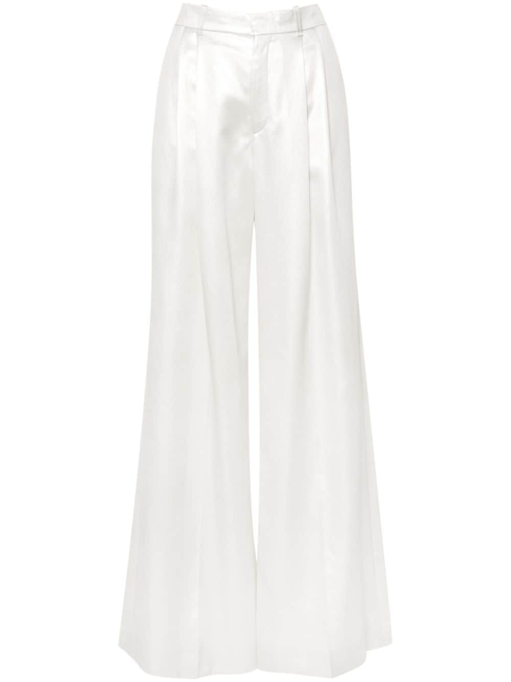 wide-leg silk trousers Highlights - Silver-tone - Silk - Metallic effect - Pleat detailing - Pressed crease - Belt loops - Two diagonal pockets to the sides - Two rear welt pockets - Wide leg - Concealed front button, hook and zip fastening Made in France Composition Lining: Silk 100% Outer: Silk 100% Washing instructions Dry Clean Only