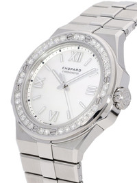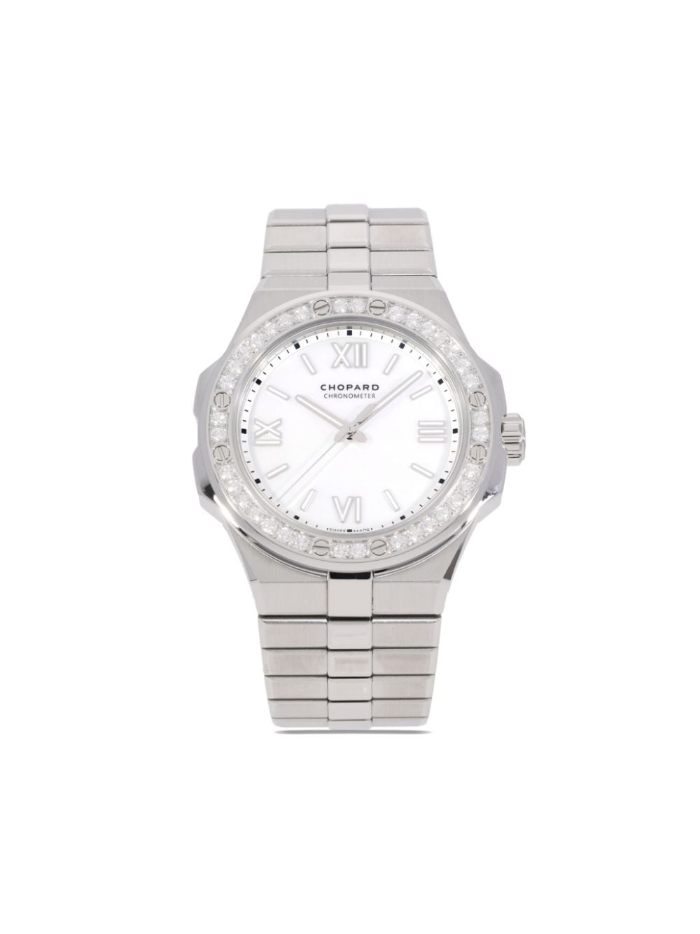 2023 unworn Alpine Eagle 36mm Highlights - Circa 2023 - 36mm - White - Stainless steel - Round face - Roman numeral dial - Baton hands - Diamond-encrusted bezel - Screw-down crown - Adjustable link bracelet - Clasp fastening - Automatic movement - This piece is new and unworn. - Pearls should be the last thing that you put on in the morning and the first thing you take off at night. avoid contact with perfumes or creams, and simply wipe with a soft cloth to clean. - Original box, papers and boutique certificate included. - An inspection by the boutique-certified watchmakers guarantees authenticity. - All repairs of the movement of the watch are covered by the boutique two-year warranty. Imported Composition Sapphire Crystal 100%, Mother of Pearl 100%, stainless steel 100% SIZE & FIT Measurement Case size 1.41 in(36 mm)