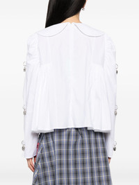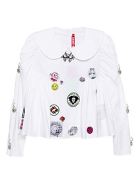 Alibi blouse Highlights - White - Concealed rear zip fastening - Long puff sleeves - Padlock detail - Rhinestone embellishment Imported Composition BCI Cotton 100% SIZE & FIT Model measurements Height 5 ft 10 in(1.77 m) Bust/Chest 30.31 in(77 cm) Hips 34.25 in(87 cm) Waist 25.19 in(64 cm) FittingInformation Designed to be unstructured, offering a loose fit throughout Made from a midweight non-stretch fabric Washing instructions Dry Clean Only