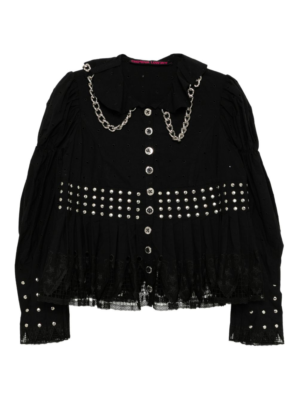 Beryl blouse Highlights - Black - Front button fastening - Eyelet detailing - Chain-link detailing - Long puff sleeves Imported Composition Cotton 65%, Polyester 35% Washing instructions Hand Wash