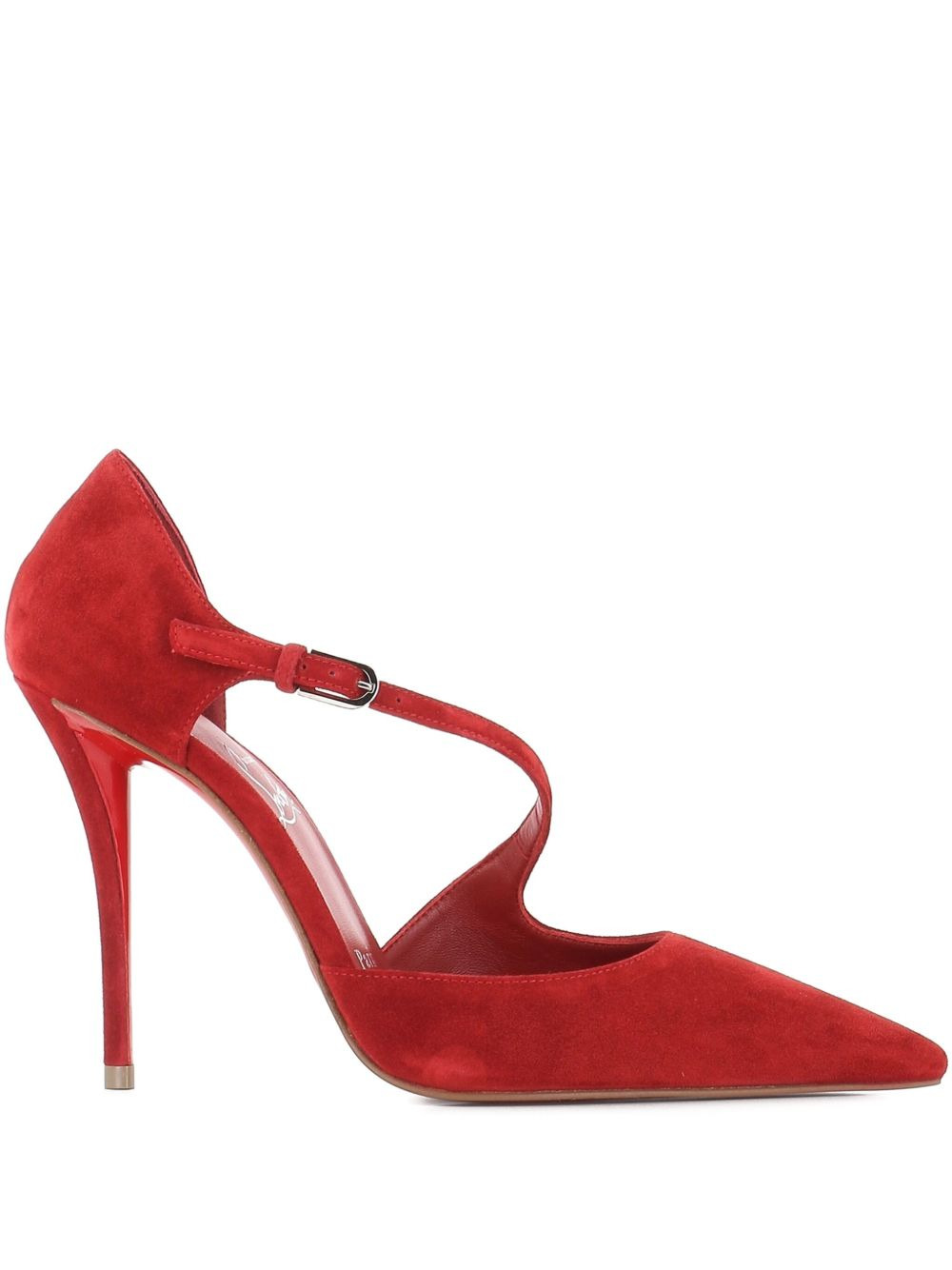 100mm Miss Ziggyta suede heeled pumps Highlights - Fever red - Suede upper - Criss-cross strap - Pointed toe - Stiletto heel - Buckle fastening Made in Italy Composition Outer: Suede 100% Lining: Leather 100% Sole: Rubber 100% SIZE & FIT Measurement HEEL 3.93 in(10 cm)