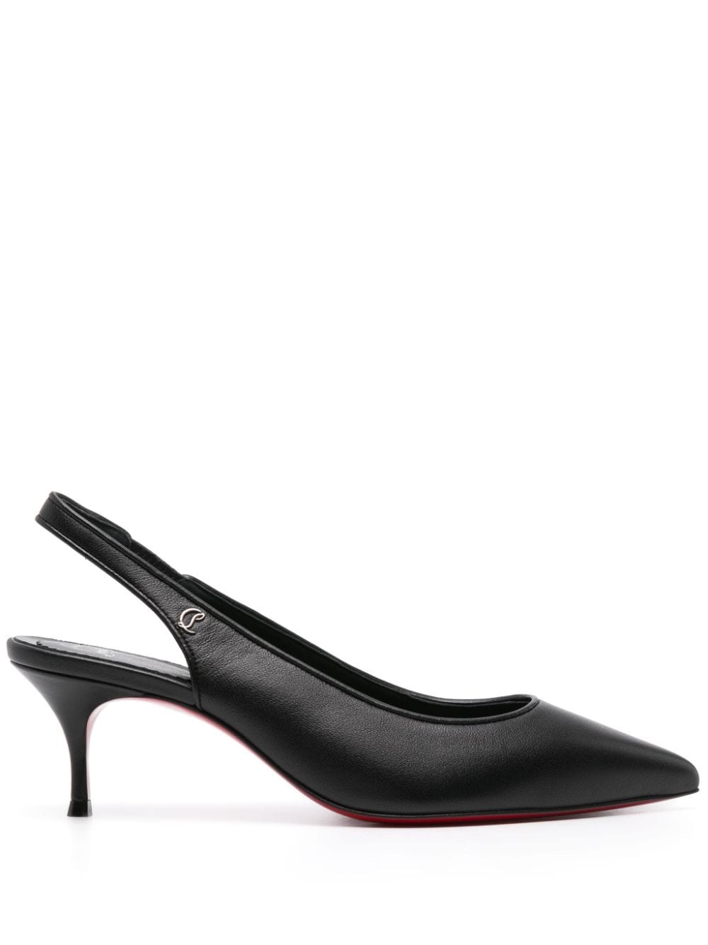 55mm Sporty Kate slingback pumps Highlights - Black - Nappa leather - Elasticated slingback strap - Pointed toe - Branded leather insole - Signature red sole - 55mm kitten heel Made in Italy Composition Outer: Nappa Leather 100% Sole: Calf Leather 100% Lining: Calf Leather 100% SIZE & FIT Measurement HEEL 2.36 in(6 cm)