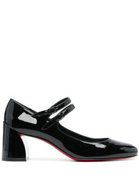 80mm Miss Jane patent leather pumps Highlights - Black/red - Calf leather - Patent finish - Double buckle fastening - Branded leather insole - Round toe - 55mm block heel Made in Italy Composition Outer: Patent Calf Leather 100% Lining: Calf Leather 100% Sole: Calf Leather 100% SIZE & FIT Measurement HEEL 3.14 in(8 cm)