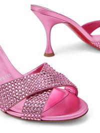 85mm Mariza sandals Highlights - Fuchsia pink - Leather - Iridescent effect - Rhinestone embellishment - Open toe - Slip-on style - Branded insole - High 85mm stiletto heel Made in Italy Composition Sole: Leather 100% Outer: Leather 100% Lining: Leather 100% SIZE & FIT Measurement HEEL 3.54 in(9 cm)