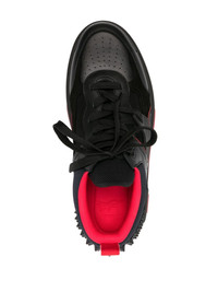 Astroloubi leather sneakers Christian Louboutin's Astroloubi model is a 'bold, '90s street-style inspired silhouette borrowing the aesthetic of the era’s iconic basketball and skate sneakers'. It's crafted from smooth calf leather to a low-top design that's animated by contrasting accents and spike studs at the heel counter. A CL varsity monogram at the side and signature red sole add the final touch. Highlights - Black/red - Calf leather - Panelled design - Suede panelling - Mesh panelling - Spike stud detailing - Embossed logo to the side - Perforated toebox - Round toe - Front lace-up fastening - Padded ankle - Pull-tab at the heel - Contrast red lining - Branded insole - Flat rubber sole - Signature logo-debossed red sole - This piece comes complete with a protective dust bag. Imported Composition Outer: Calf Leather 100%, Fabric 100% Sole: Rubber 100% Lining: Fabric 100% SIZE & FIT Measurement HEEL 1.96 in(5 cm) Sole height 1.57 in(4 cm)