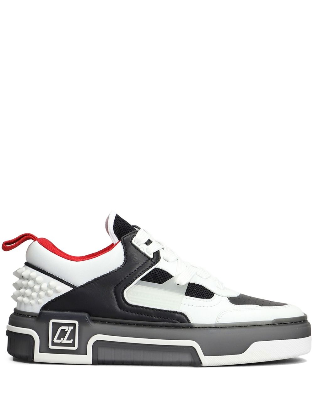 Astroloubi sneakers Highlights - White - Front lace-up fastening - Spike stud detailing - Pull-tab at the heel - Signature red sole Made In Italy Composition Outer: Fabric 100%, Calf Leather 75%, Nappa Leather 25% Sole: Rubber 100% Lining: Fabric 100%