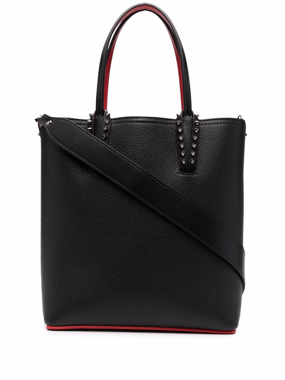 Cabata leather tote bag black/red leather grained texture spike stud detailing two top handles adjustable detachable shoulder strap clip fastening main compartment signature red lining Made in Italy Composition Outer: Leather 100% SIZE & FIT Model measurements Height 5 ft 10 in(1.78 m) Bust/Chest 33.07 in(84 cm) Hips 36.61 in(93 cm) Waist 24.8 in(63 cm) Measurement DEPTH 3.54 in(9 cm) HANDLE 5.9 in(15 cm) HEIGHT 11.02 in(28 cm) STRAP 23.62 in(60 cm) WIDTH 11.41 in(29 cm)