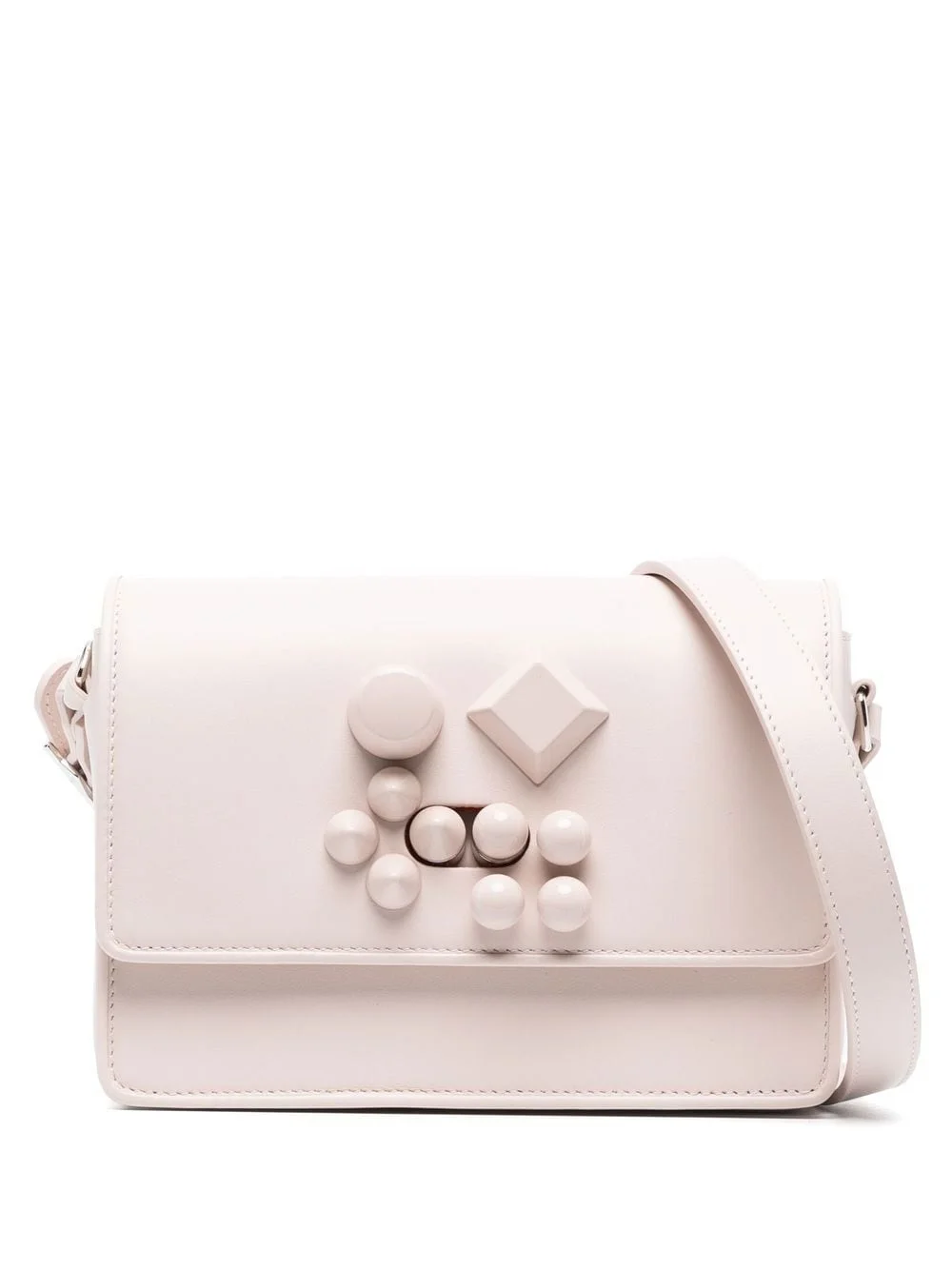 Cara-Sky stud-detail shoulder bag cream white calf leather stud detailing foldover top with magnetic fastening main compartment internal zip-fastening pocket adjustable shoulder strap Made in Italy Composition Outer: Calf Leather 100% SIZE & FIT Model measurements Height 5 ft 10 in(1.78 m) Bust/Chest 31.49 in(80 cm) Hips 37 in(94 cm) Waist 23.62 in(60 cm) Measurement DEPTH 2.36 in(6 cm) WIDTH 7.87 in(20 cm) HEIGHT 5.11 in(13 cm) STRAP 20.47 in(52 cm)