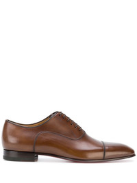 classic design derby shoes Fusing fashion and uniqueness, French label Louboutin crafts only chic and extravaganza. He embraces a youthful energy around the collection - with emphasis upon detailing and a classy theme. His focus on wearable yet beautiful shoes give the line currency with chic young men. Havane brown leather classic design derby shoes from Christian Louboutin featuring a lace fastening, interior designer logo and low chunky heel. Made in Italy Composition Outer: Calf Leather 100% Lining: Calf Leather 100% Sole: Calf Leather 100% SIZE & FIT Measurement HEEL 0.78 in(2 cm)