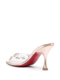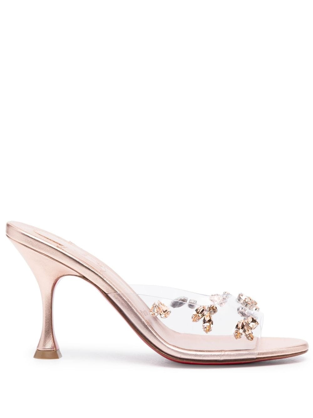 Degraqueen 85mm embellished sandals Highlights - Light pink - Calf leather - Transparent strap - Floral motif - Crystal embellishment - Peep toe - Branded insole - Signature red sole - 85mm stiletto heel Made in Italy Composition Outer: Calf Leather 100%, Polyurethane 100% Sole: Calf Leather 100% Lining: Calf Leather 100%, Polyurethane 100% SIZE & FIT Measurement HEEL 3.74 in(9.5 cm)