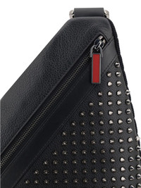 Funky sling bag Highlights - Black - Front zip fastening - Adjustable shoulder strap - Spike stud detailing Made in Italy Composition Outer: Calf Leather 100%, Cotton 100% SIZE & FIT Measurement DEPTH 3 in(7.6 cm) HEIGHT 12 in(30.4 cm) WIDTH 7 in(17.7 cm)