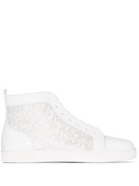 Louis logo-print leather high top sneakers Christian Louboutin's high-top sneakers are an ode to logomania that's very much still alive. Crafted in Italy from leather, it's covered with the brand's monogram along the sides. Minimalists will love it.Featuring a pull tab at the rear, a rubber sole, a lace up detail and an all over logo print. Made in Italy Composition Outer: Calf Leather 100% Lining: Calf Leather 100% Sole: Rubber 100% SIZE & FIT Model measurements Height 6 ft 1 in(1.86 m) Bust/Chest 37.4 in(95 cm) Hips 36.22 in(92 cm) Waist 29.52 in(75 cm) Measurement HEEL 0.98 in(2.5 cm) HEIGHT 5.31 in(13.5 cm) Sole height 0.98 in(2.5 cm)