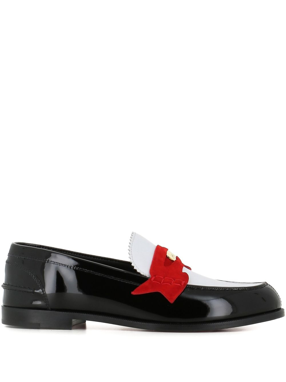 Penny Donna patent leather loafers Highlights - Black, white and red - Patent leather finish - Red suede detail - Gold-tone logo plaque - Scalloped trim - Leather sole Made in Italy Composition Outer: Leather 100% Lining: Leather 100% Sole: Leather 100%, Rubber 100%