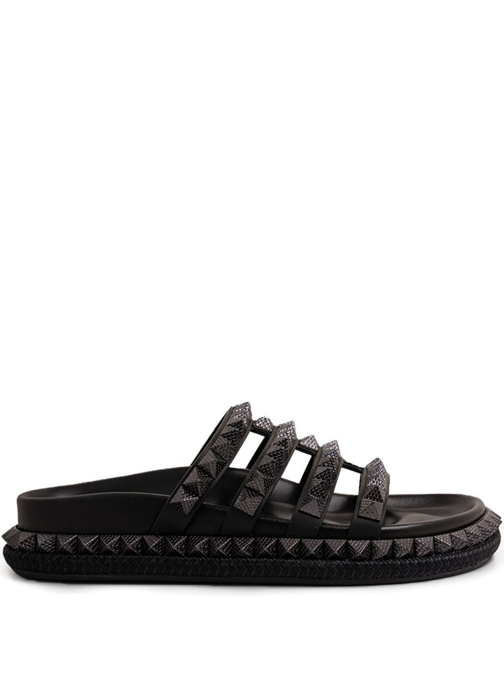 Pyra Hallulila multi-strap flat sandals Highlights - Black - Stud embellishments - Multi straps - Rubber sole Made in Italy Composition Outer: Calf Leather 100% Sole: Rubber 100% Lining: Calf Leather 100%