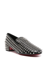 Spikeasy 30mm loafers Highlights - Black - Calf leather - Spiked stud design - Round toe - Branded leather insole - Leather lining - 30mm low block heel - Signature red sole - Silver-tone hardware - Slip-on style - This piece comes complete with a protective dust bag. Made in Italy Composition Sole: Calf Leather 100% Outer: Calf Leather 100% Lining: Calf Leather 100% SIZE & FIT Measurement HEEL 1.37 in(3.5 cm)