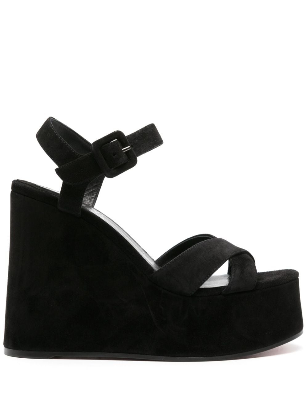 Supramariza 130mm wedge sandals Highlights - Black - Calf suede - Signature red sole - Round open toe - Crossover strap at the toe - Buckle-fastening ankle strap - Leather lining - Branded footbed - 130mm platform wedge - This piece comes complete with a protective dust bag. Imported Composition Suede 100% SIZE & FIT Measurement CIRCUMFERENCE 8.66 in(22 cm) HEEL 5.11 in(13 cm) PLATFORM 1.96 in(5 cm)
