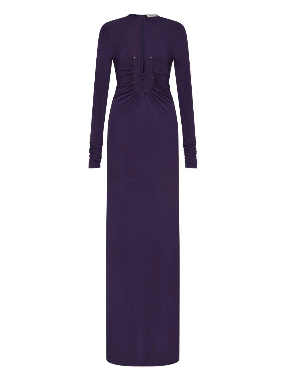 Arced Palm long-sleeves maxi dress Highlights - Violet - Gathered detail - Long sleeves - V-neck - Floor length Imported Composition Viscose 100%, Zinc Alloy 100% Washing instructions Read Manufacturer Guidelines