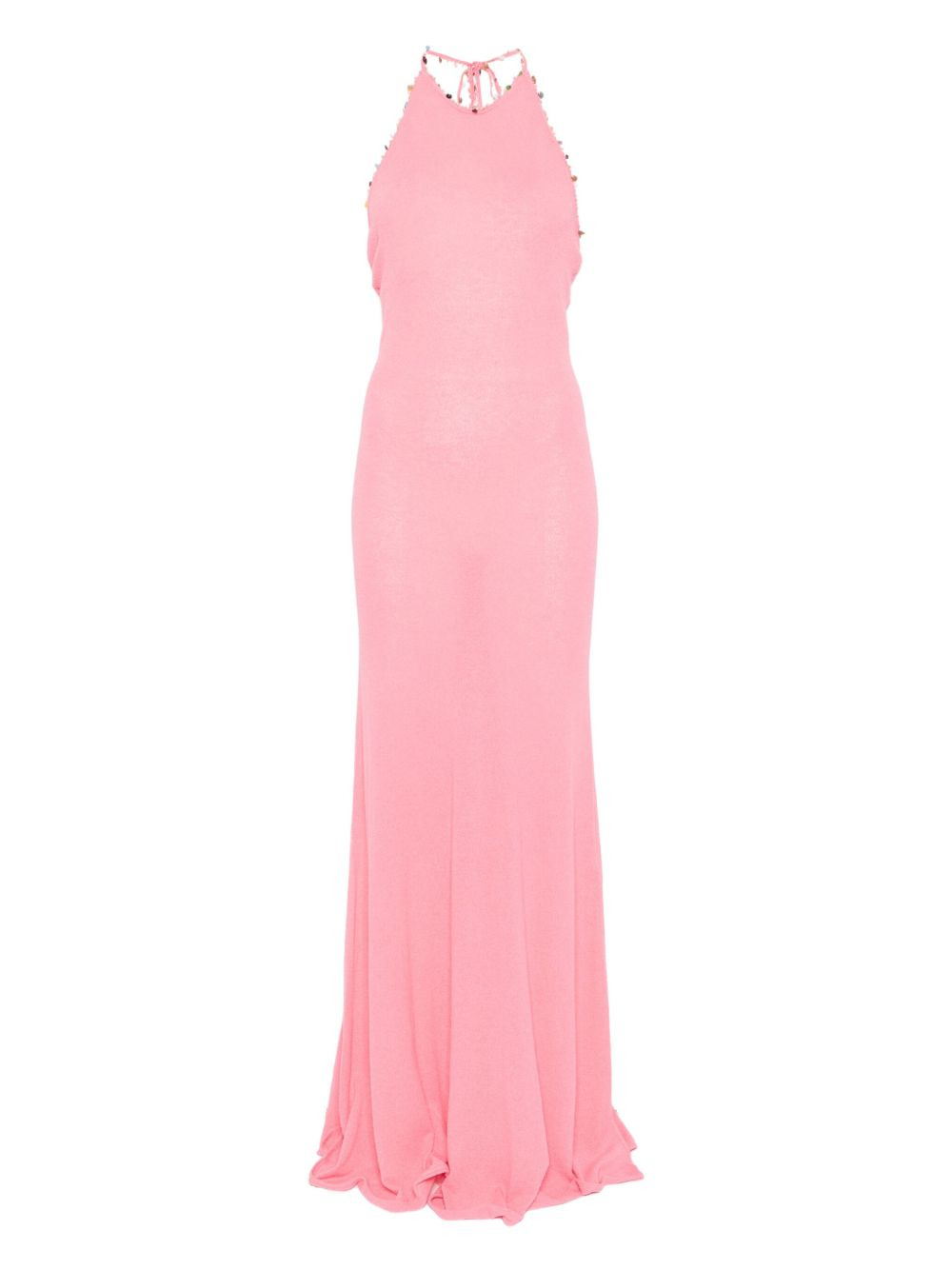 embellished halterneck dress Highlights - Cerise pink Imported Composition Natural Stone 100%, Cotton 75%, Nylon 25% SIZE & FIT Model measurements Height 5 ft 9 in(1.75 m) Bust/Chest 32.67 in(83 cm) Hips 36.22 in(92 cm) Waist 24.8 in(63 cm)