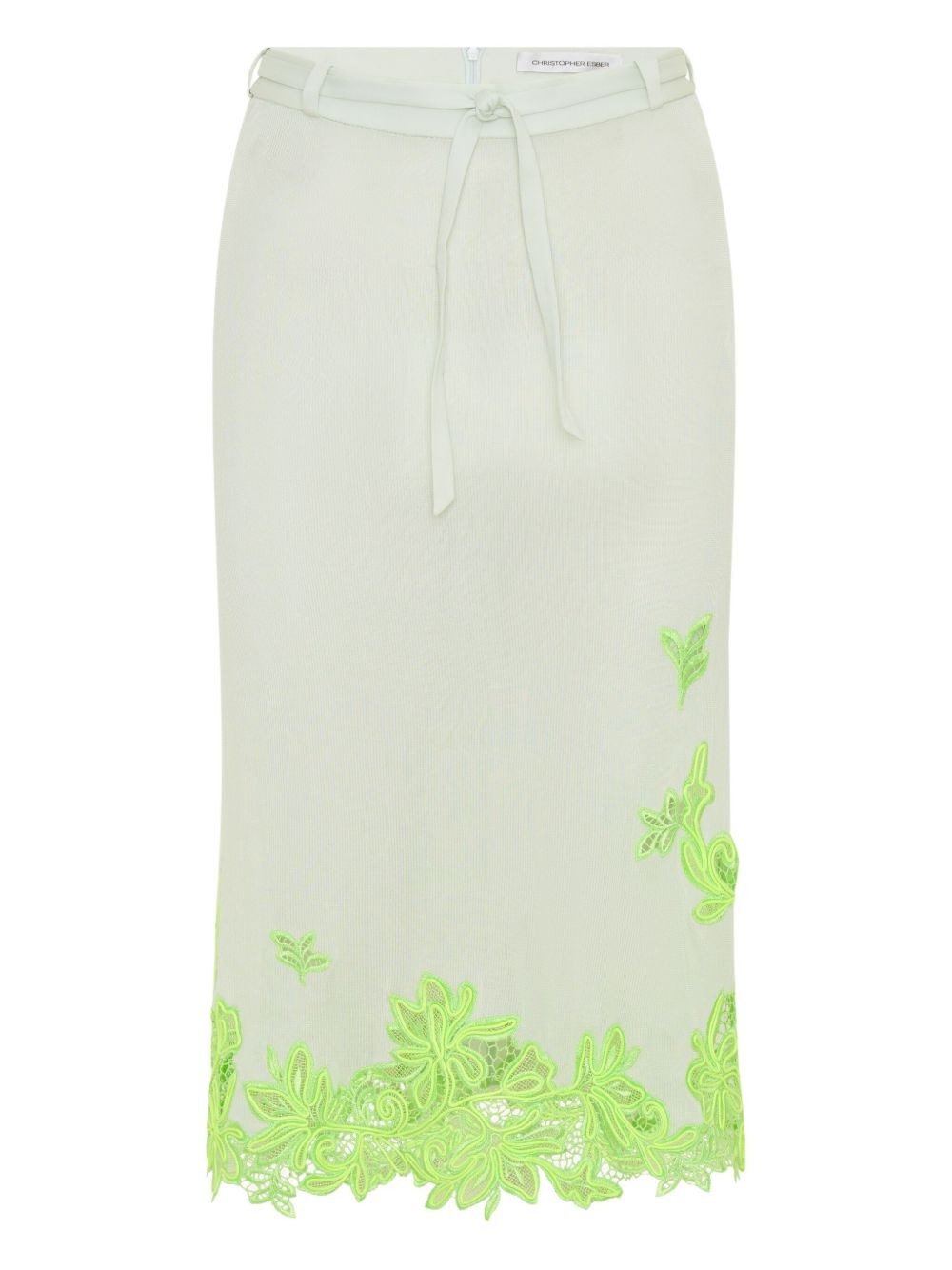lace-trim midi skirt Highlights - White - Lace trim - Zip fastening - Belted waist - Belt loops - Midi length Imported Composition Polyester 100%, Viscose 95%, Spandex/Elastane 5% Washing instructions Read Manufacturer Guidelines