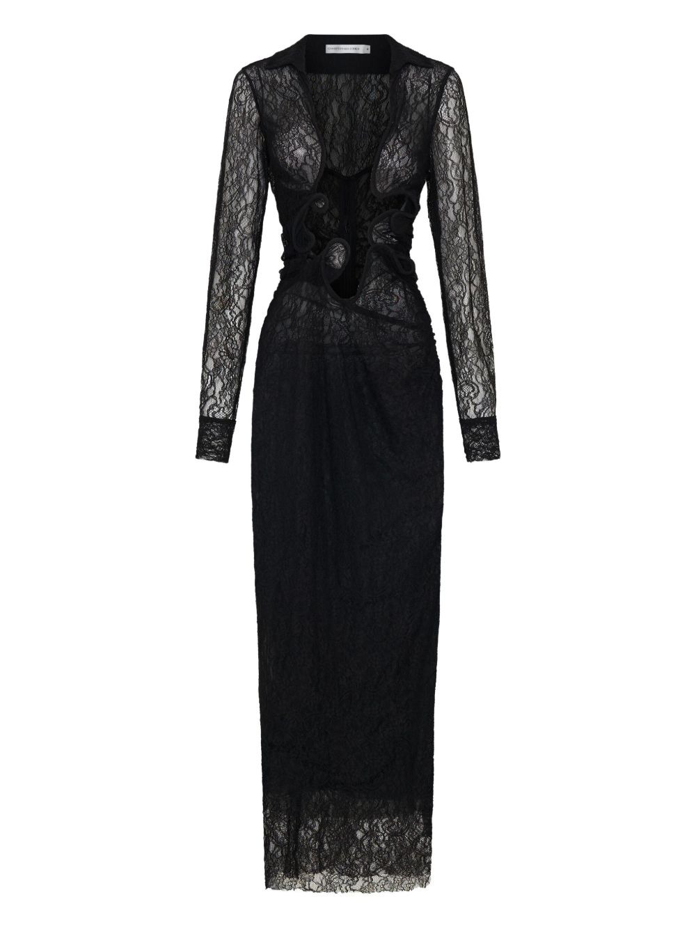 Lace Venus maxi dress Highlights - Black - Sheer-lace fabric - Long sleeves - Plunge neckline Imported Composition Polyamide 40%, Viscose 37%, Elastane 23% Washing instructions Read Manufacturer Guidelines