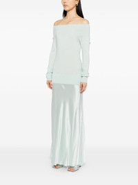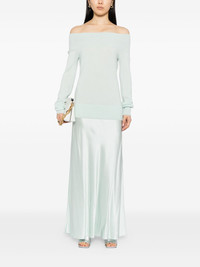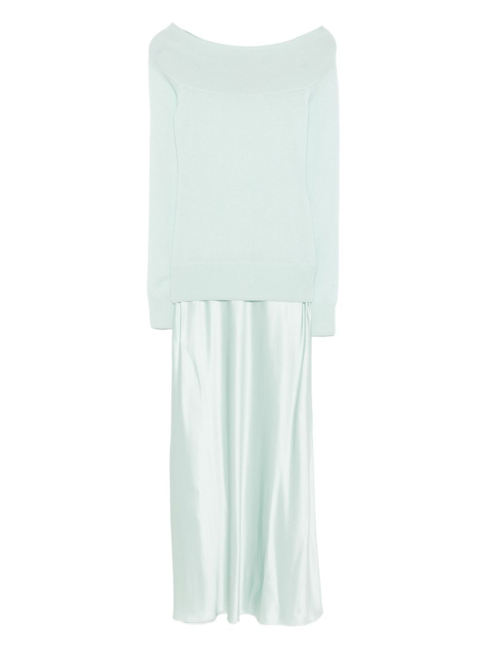 off-shoulder dress Highlights - Mint green - Long sleeves - Straight hem Imported Composition Outer: Cashmere 100% Silk 100% SIZE & FIT Model measurements Height 5 ft 10 in(1.77 m) Bust/Chest 30.31 in(77 cm) Hips 34.25 in(87 cm) Waist 25.19 in(64 cm) FittingInformation Designed for a slim fit that sits just away from the body offering a close yet comfortable fit Made with a lightweight knit, this piece offers some stretch Washing instructions Dry Clean Only