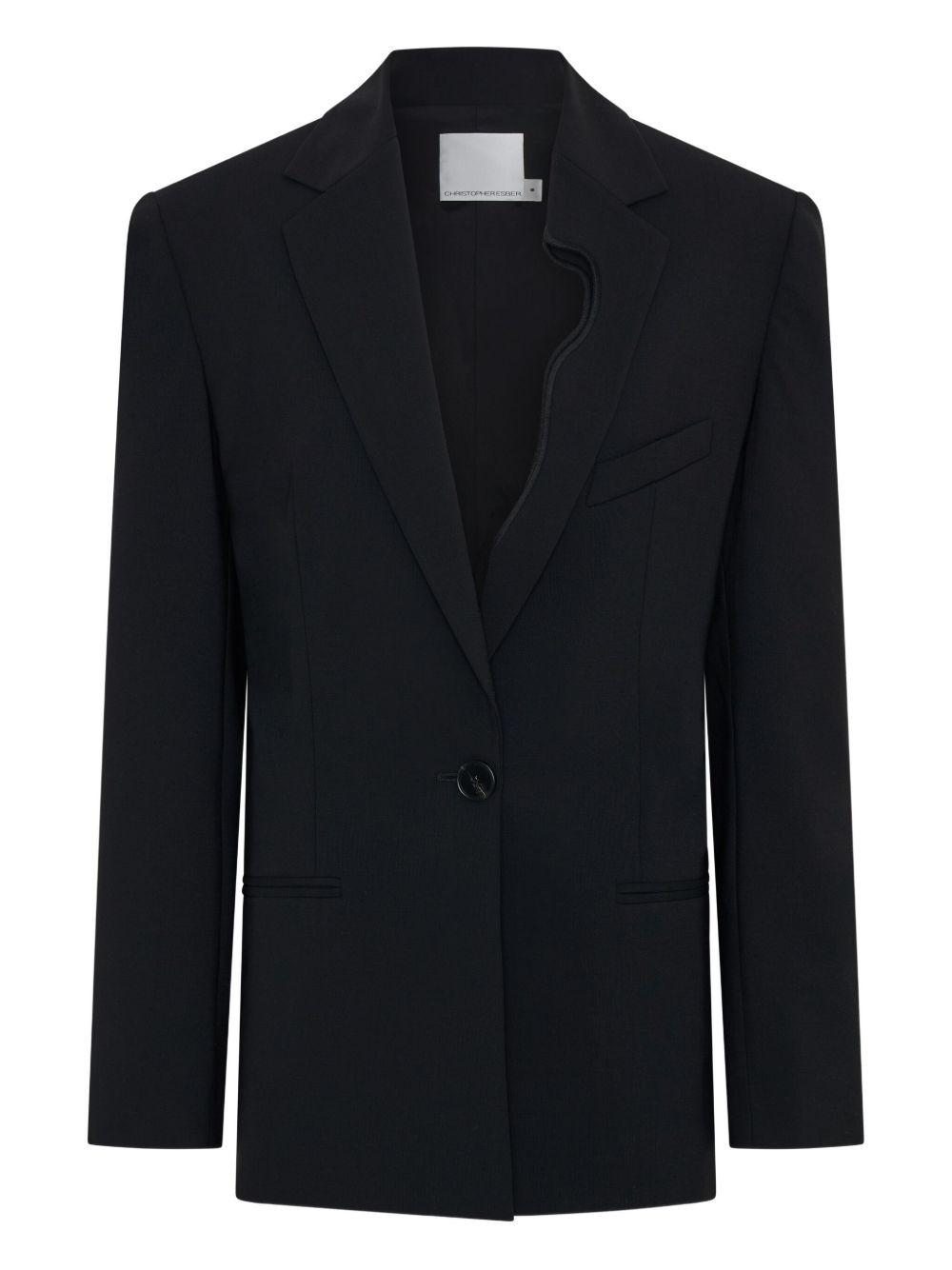 padded-shoulder single-button blazer Highlights - Black Imported Composition Wool 96%, Elastane 4% Washing instructions Read Manufacturer Guidelines