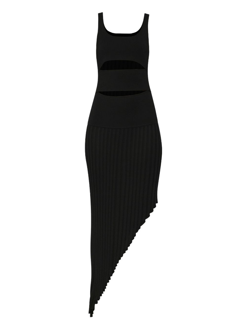slashed asymmetric dress Highlights - Black - Asymmetrical hem - Plisse detail - Cut-out details Imported Composition Viscose 80%, Nylon 20% Washing instructions Read Manufacturer Guidelines