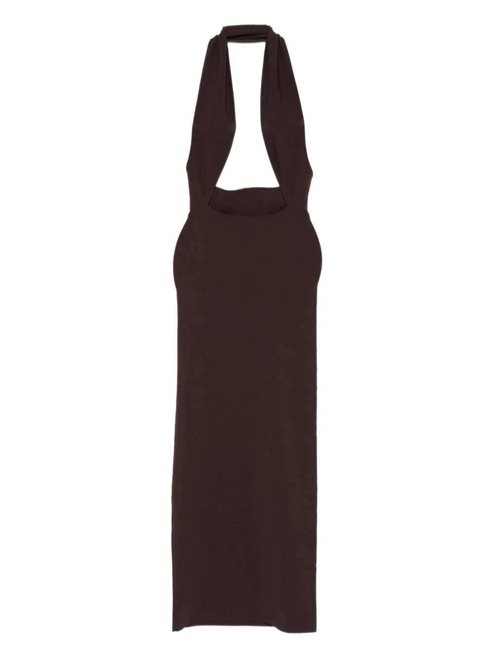 Slope halter-neck maxi dress Highlights - Dark brown - Halter neck - Open back - Sleeveless Imported Composition Viscose 80%, Nylon 20% SIZE & FIT Model measurements Height 5 ft 11 in(1.8 m) Bust/Chest 31.49 in(80 cm) Hips 36.61 in(93 cm) Waist 24.4 in(62 cm) Washing instructions Read Manufacturer Guidelines