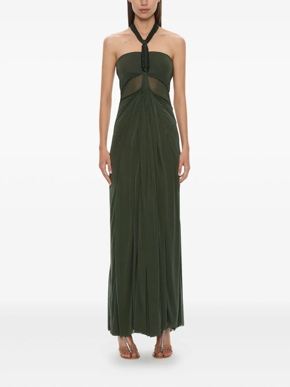 Solea maxi dress Highlights - Bottle green - Halterneck - Sheer panel - Braided detail - Gathered detail Imported Composition Outer: Rayon 71%, Polyester 29% Lining: Silk 100% Washing instructions Read Manufacturer Guidelines