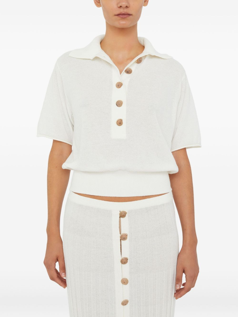 Sundial Shell knitted polo top Highlights - White - Cotton-blend - Shell-button placket - Short sleeves Imported Composition Cotton 75%, Nylon 25% Washing instructions Read Manufacturer Guidelines