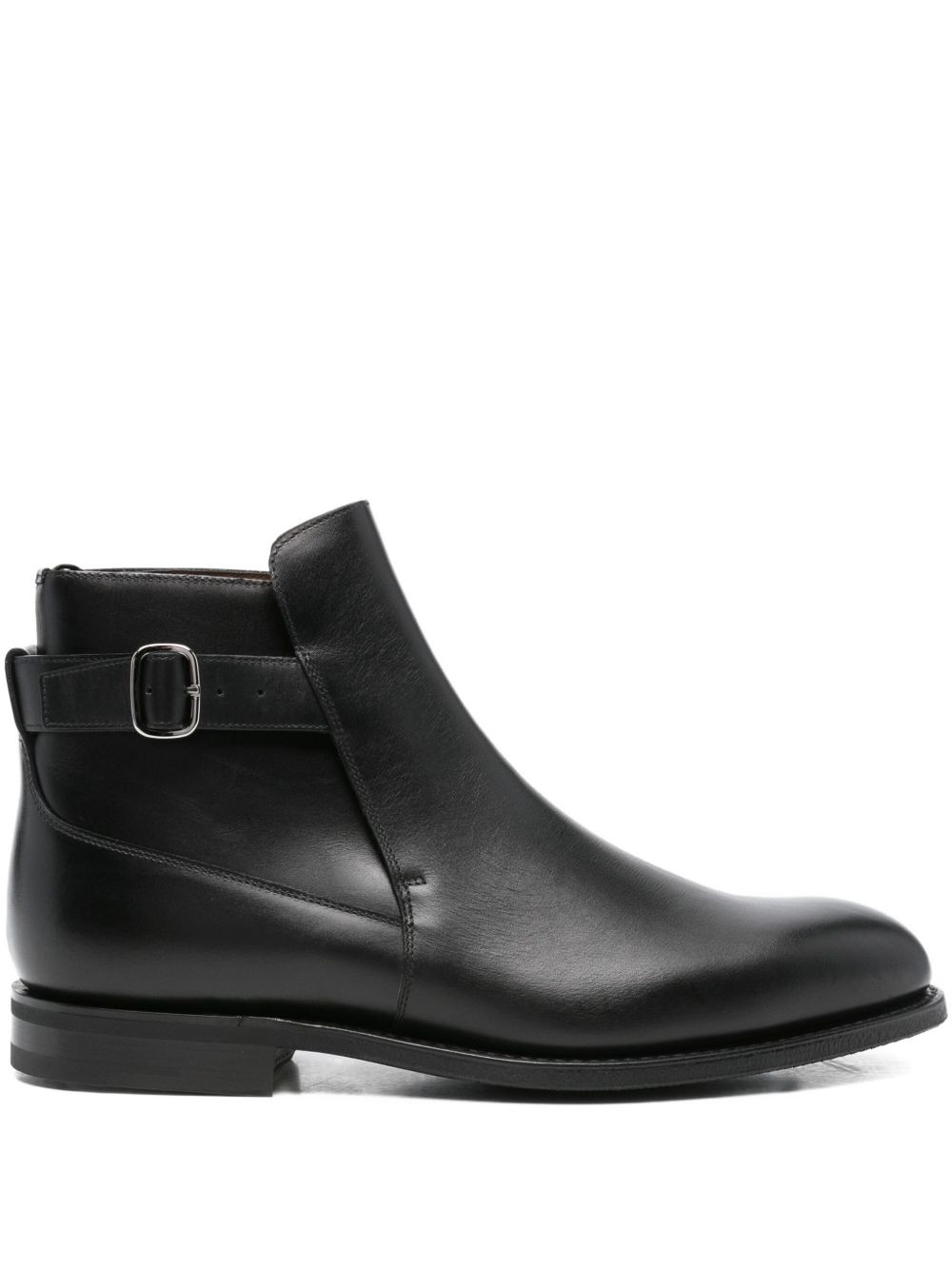 buckle-fastening leather ankle boots Highlights - Black - Calf leather - Buckle fastening - Ankle height - Low heel Composition Outer: Calf Leather 100% Sole: Calf Leather 100%, Rubber 100% Lining: Calf Leather 100%