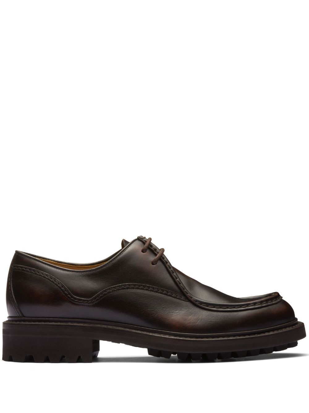 Monteria lace-up leather derby shoes Highlights - Coffee brown - Calf leather - Burnished finish - Panelled design - Seam detailing - Round toe - Front lace-up fastening - Branded leather insole - Low block heel - Rubber sole Composition Outer: Calf Leather 100% Sole: Rubber 100% Lining: Calf Leather 100%