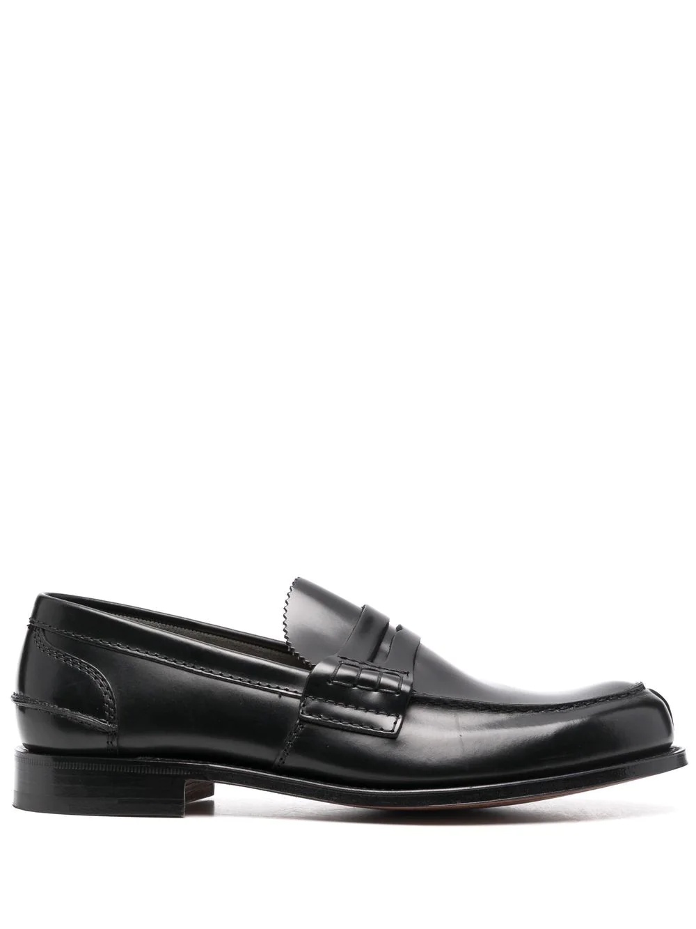 Pembrey polished loafers A timeless silhouette, Church's Pembrey loafer demonstrates their artisanal techniques in shoemaking thanks to its intricate hand stitch detail to the sides and smooth leather construction. This iteration arrives in a deep black hue with a polished finish. Composition Outer: Leather 100% Lining: Leather 100%, Fabric 100% Sole: Leather 100% SIZE & FIT Measurement HEEL 0.98 in(2.5 cm)