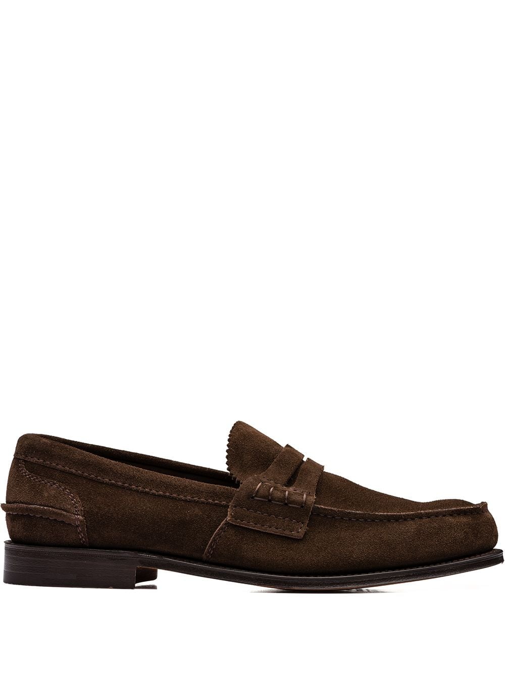 Pembrey Rodeo loafers It's not your first time at the rodeo. Galop full speed ahead with these Pembrey Rodeo loafers from Church's. Giddy up. Composition Sole: Calf Leather 100% Outer: Calf Suede 100% Lining: Leather 100% SIZE & FIT Measurement HEEL 0.98 in(2.5 cm) Sole height 0.39 in(1 cm)
