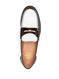 Pembrey W5 leather loafers Highlights - Brown/white - Calf leather - Smooth grain - Round toe - Moc stitching - Penny slot - Slip-on style - Stacked sole - Branded leather insole - Leather lining Composition Sole: Calf Leather 100%, Rubber 100% Lining: Calf Leather 100% Outer: Leather 100% SIZE & FIT Measurement HEEL 1.18 in(3 cm) Sole height 0.59 in(1.5 cm)