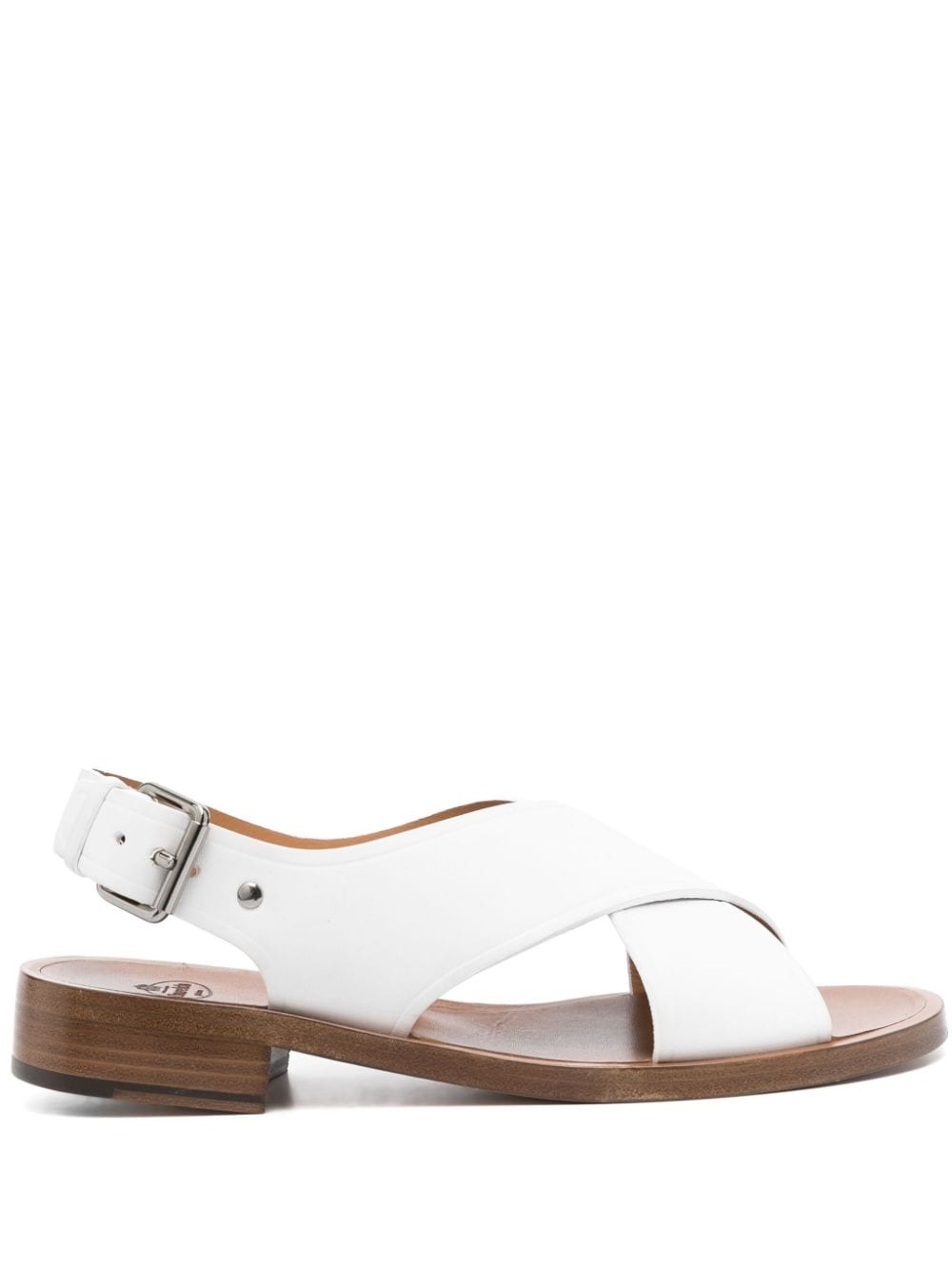 Rhonda leather sandals Highlights - White/brown - Calf leather - Round open toe - Crossover strap detail - Branded footbed - Low stacked heel - Flat leather sole - Buckle-fastening slingback strap Composition Sole: Calf Leather 100% Lining: Calf Leather 100% Outer: Calf Leather 100% SIZE & FIT Measurement HEEL 1.18 in(3 cm) HEIGHT 1.37 in(3.5 cm)
