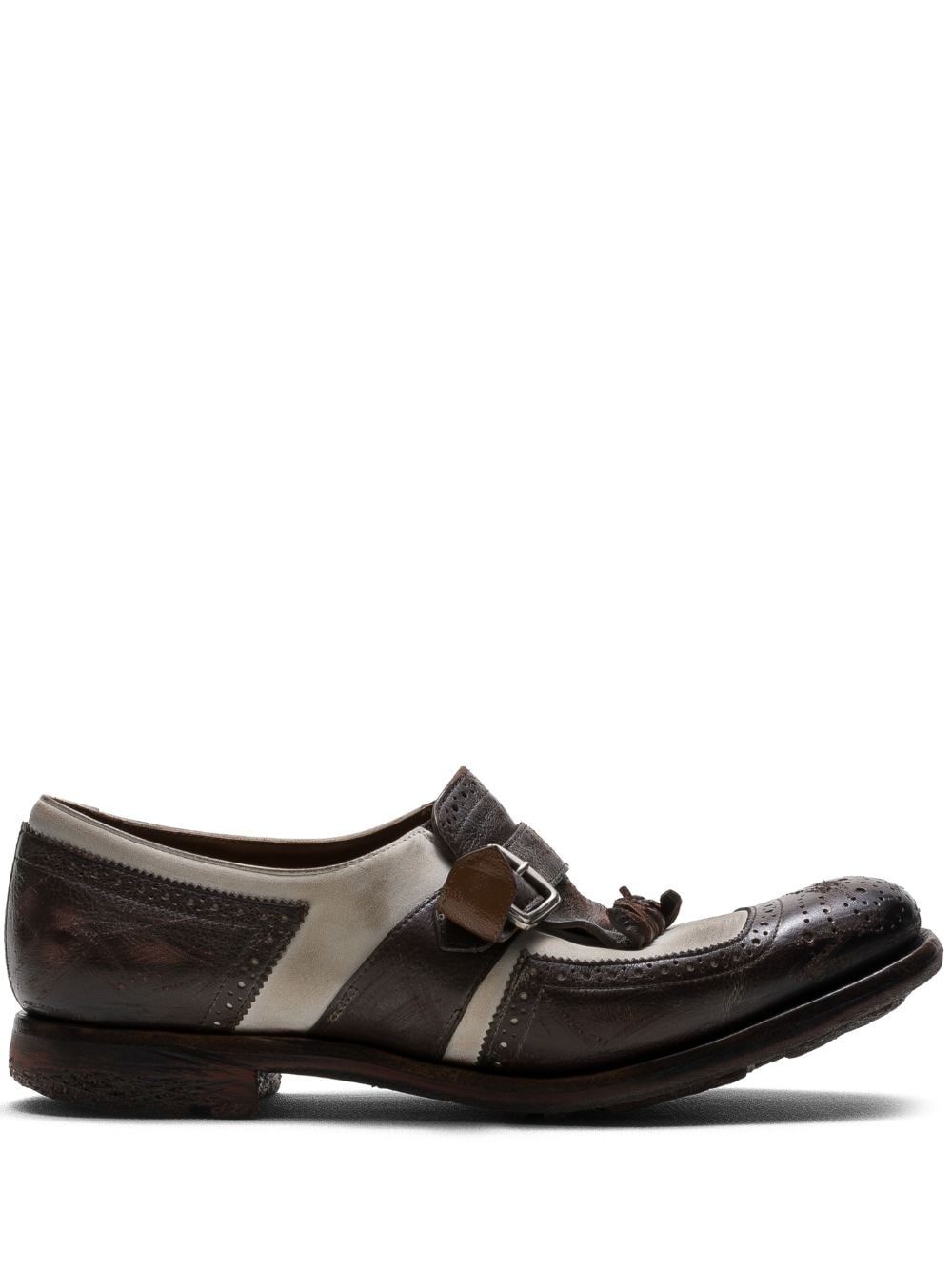 Shangai W loafers Highlights - Coffee brown/white - Calf leather - Panelled design - Off-centre front buckle fastening - Square toe - Branded leather insole - Rubber lug sole Composition Leather 100%