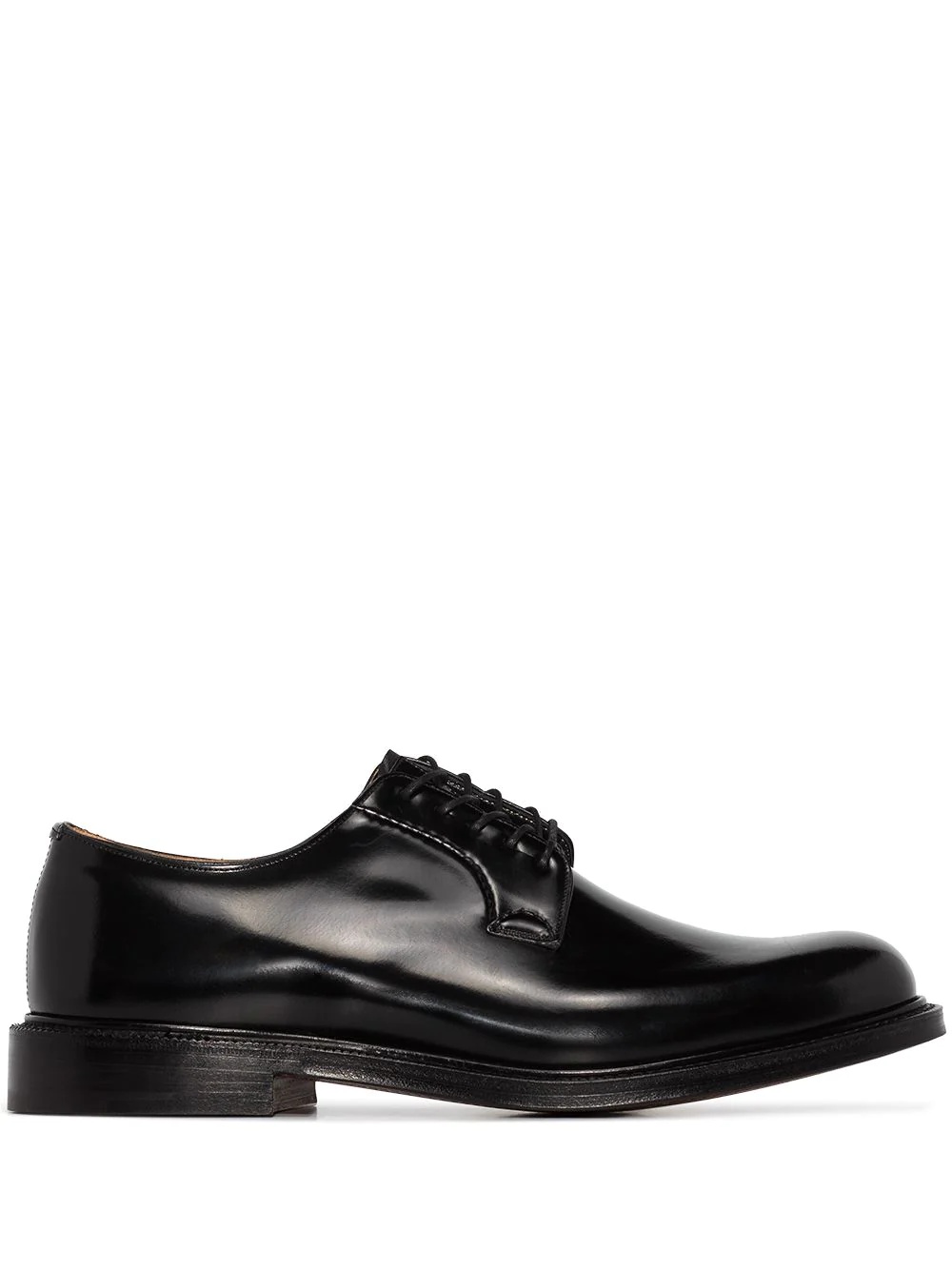 Shannon Derby shoes Known for their impeccable construction of footwear designs since the brands inception in 1873, Church's gives the Shannon shoes a contemporary twist, thanks to their high-shine finish. Composition Lining: Leather 100% Sole: Leather 100% Outer: Leather 100% SIZE & FIT Model measurements Height 6 ft 1 in(1.86 m) Bust/Chest 35.43 in(90 cm) Hips 36.61 in(93 cm) Waist 29.52 in(75 cm) Measurement HEEL 1.57 in(4 cm) Sole height 0.78 in(2 cm)